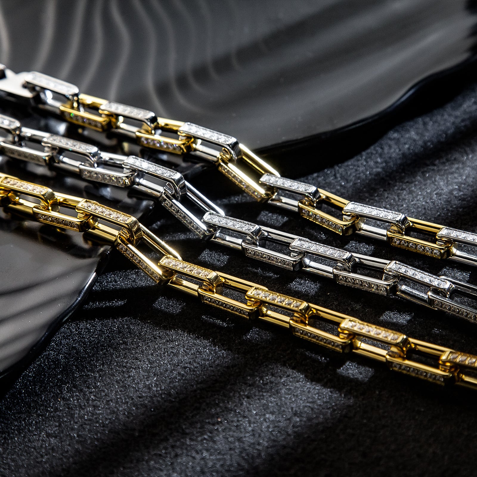 ◾️ AAAAA等級のジルコニアダイヤモンドが埋め込まれたリンクが組み合わさったスタイリッシュかつエレガントな一本。