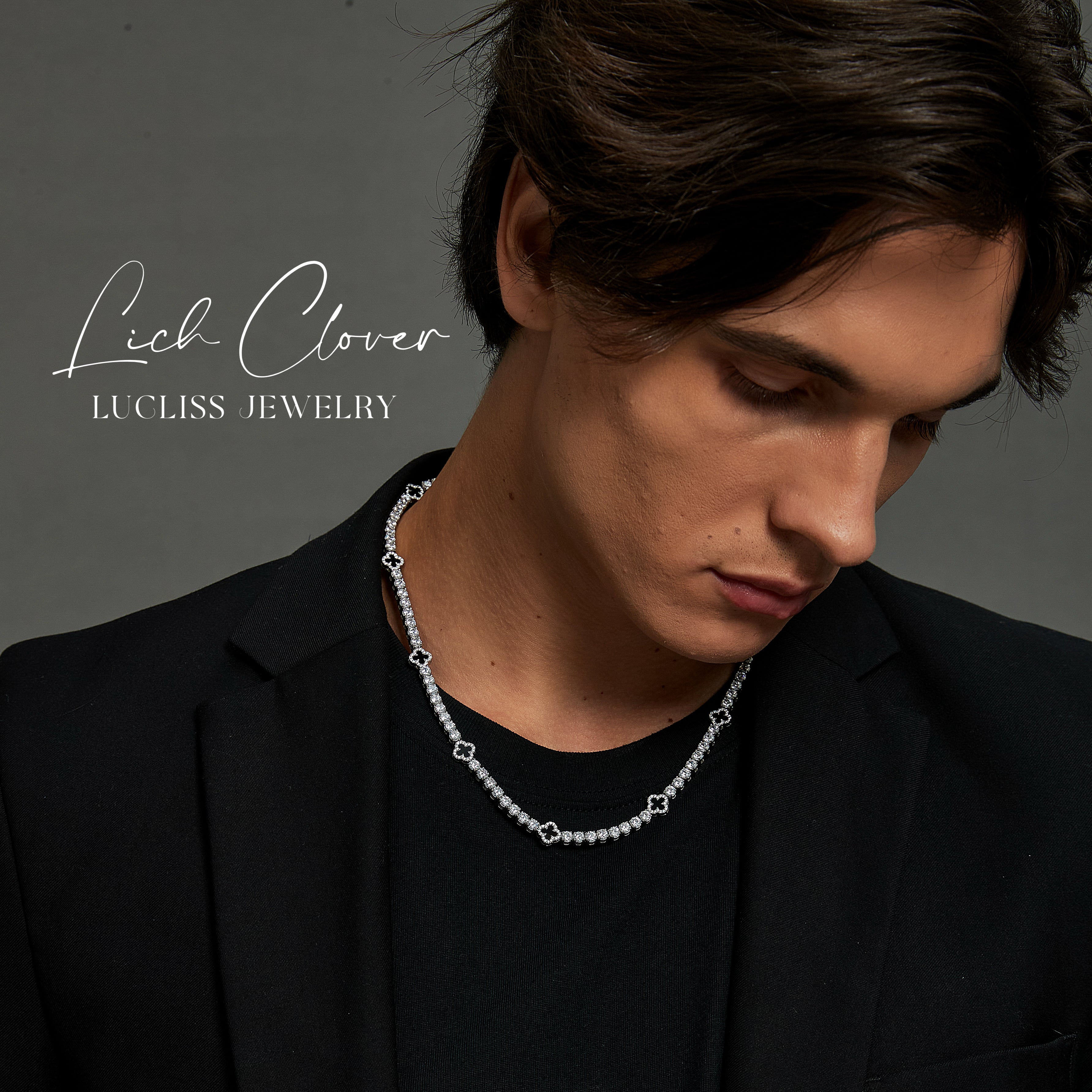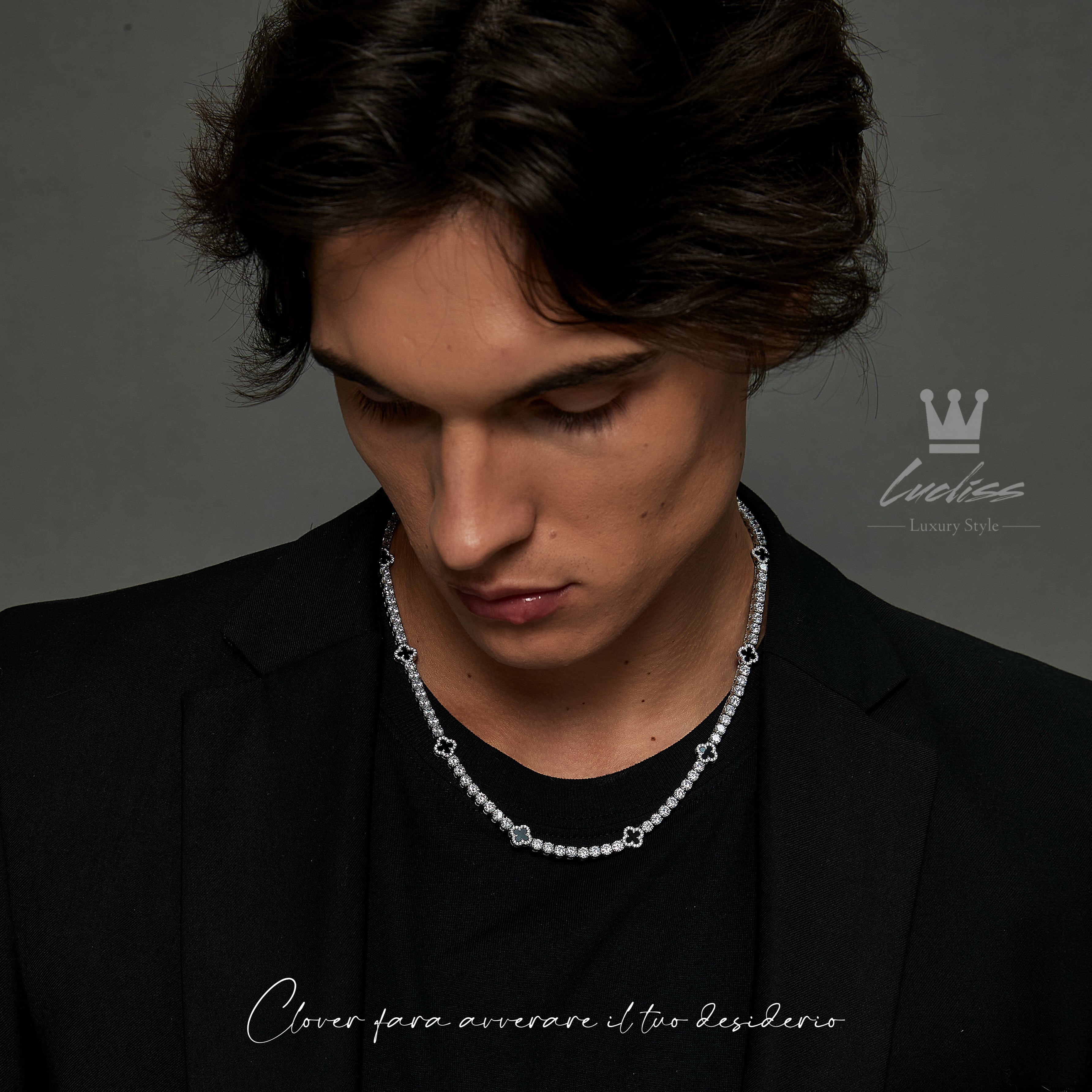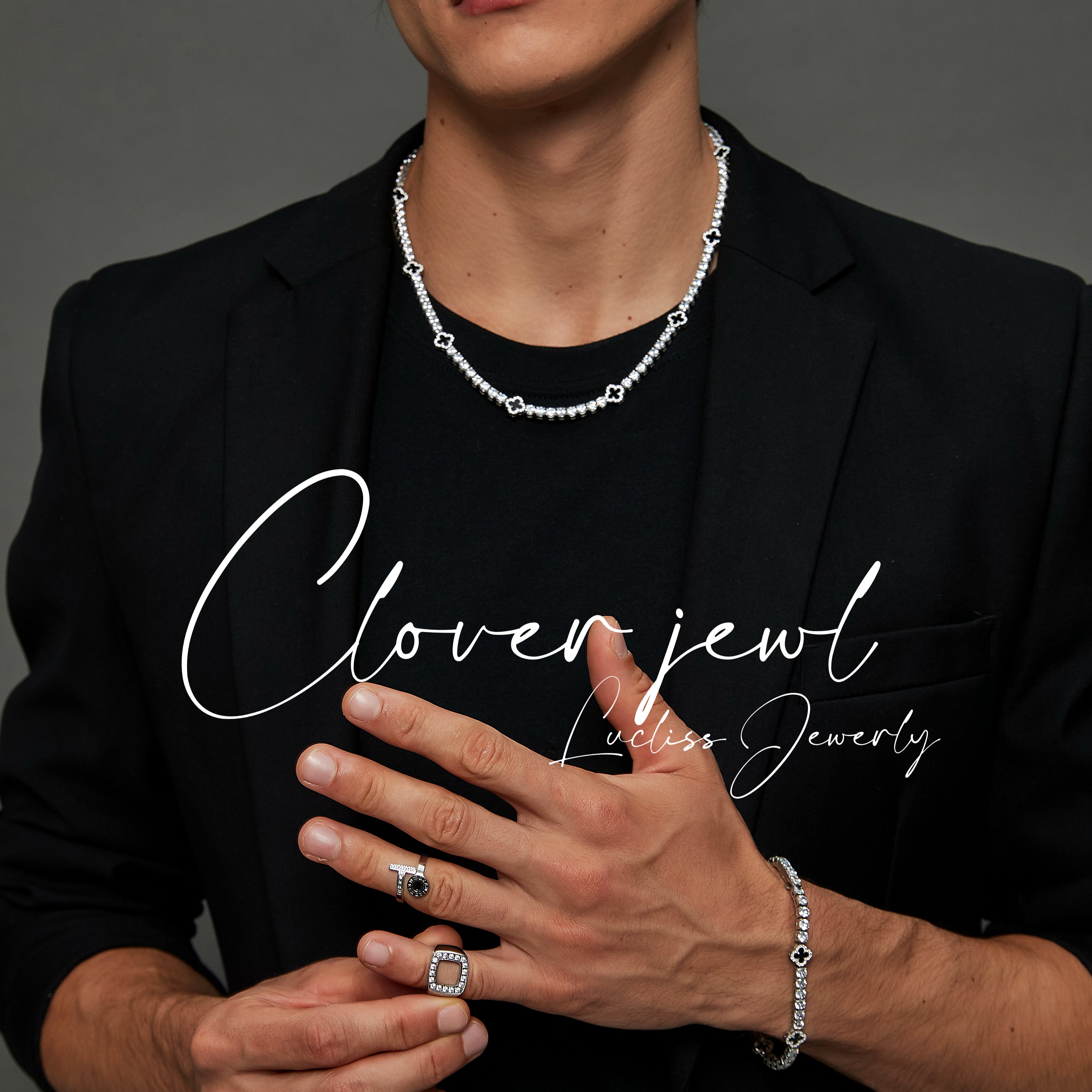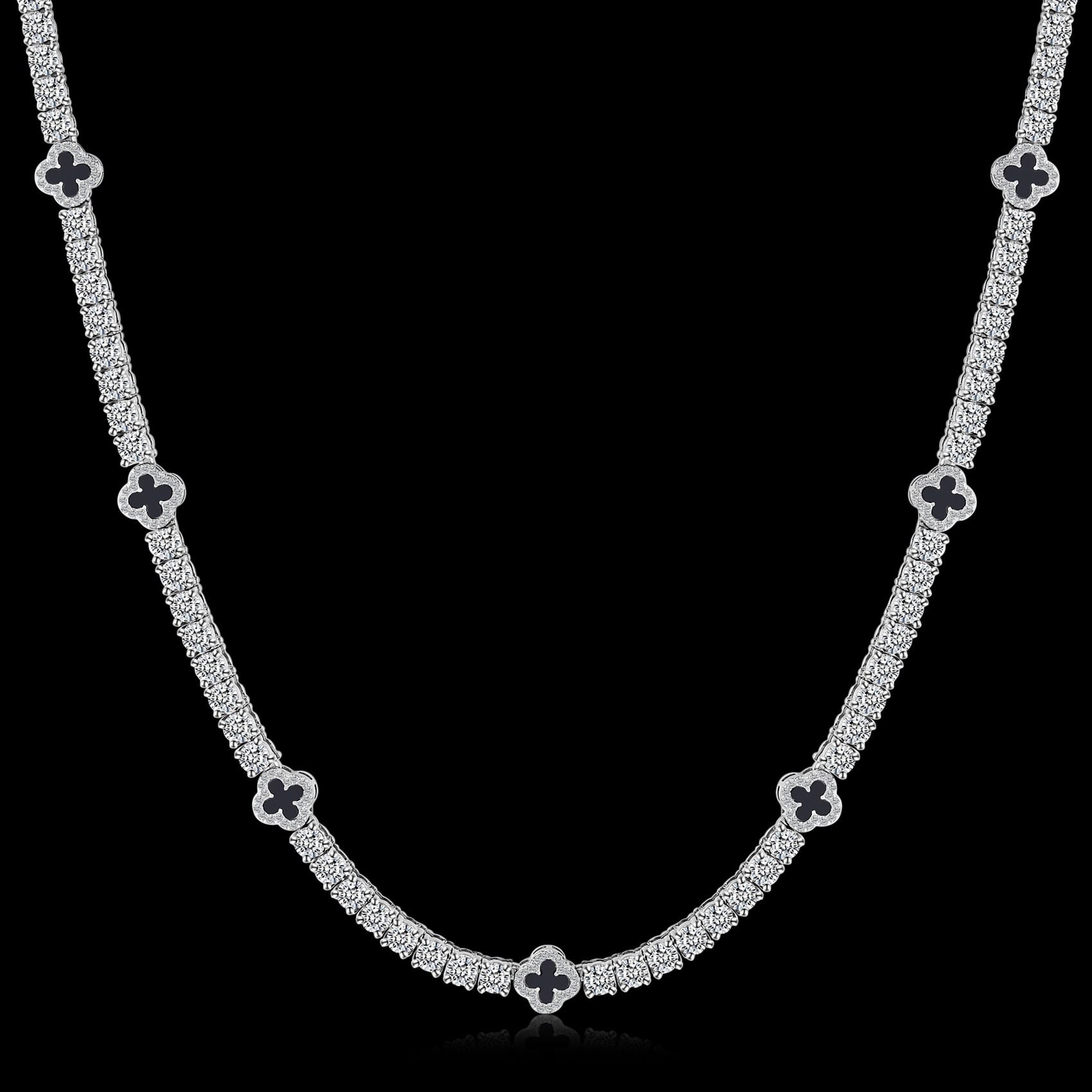 316L Black clover tennis necklace 【シルバー】