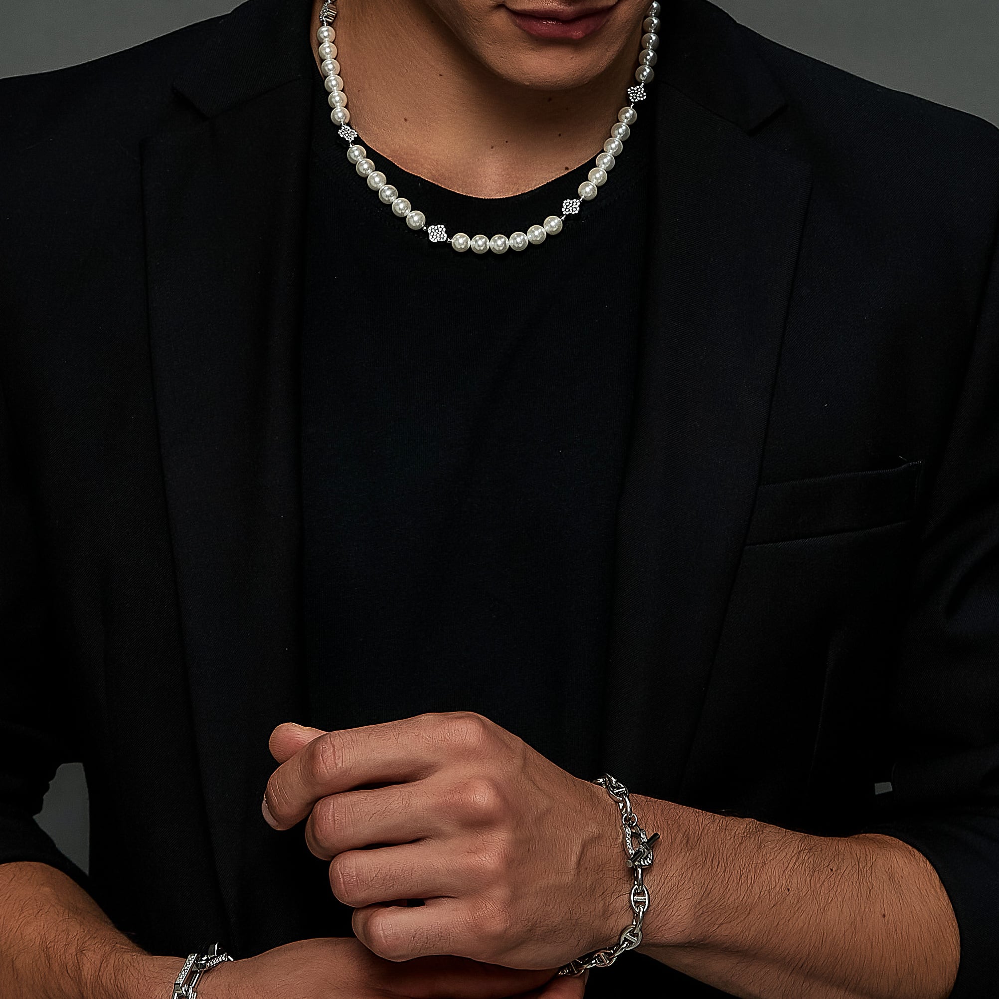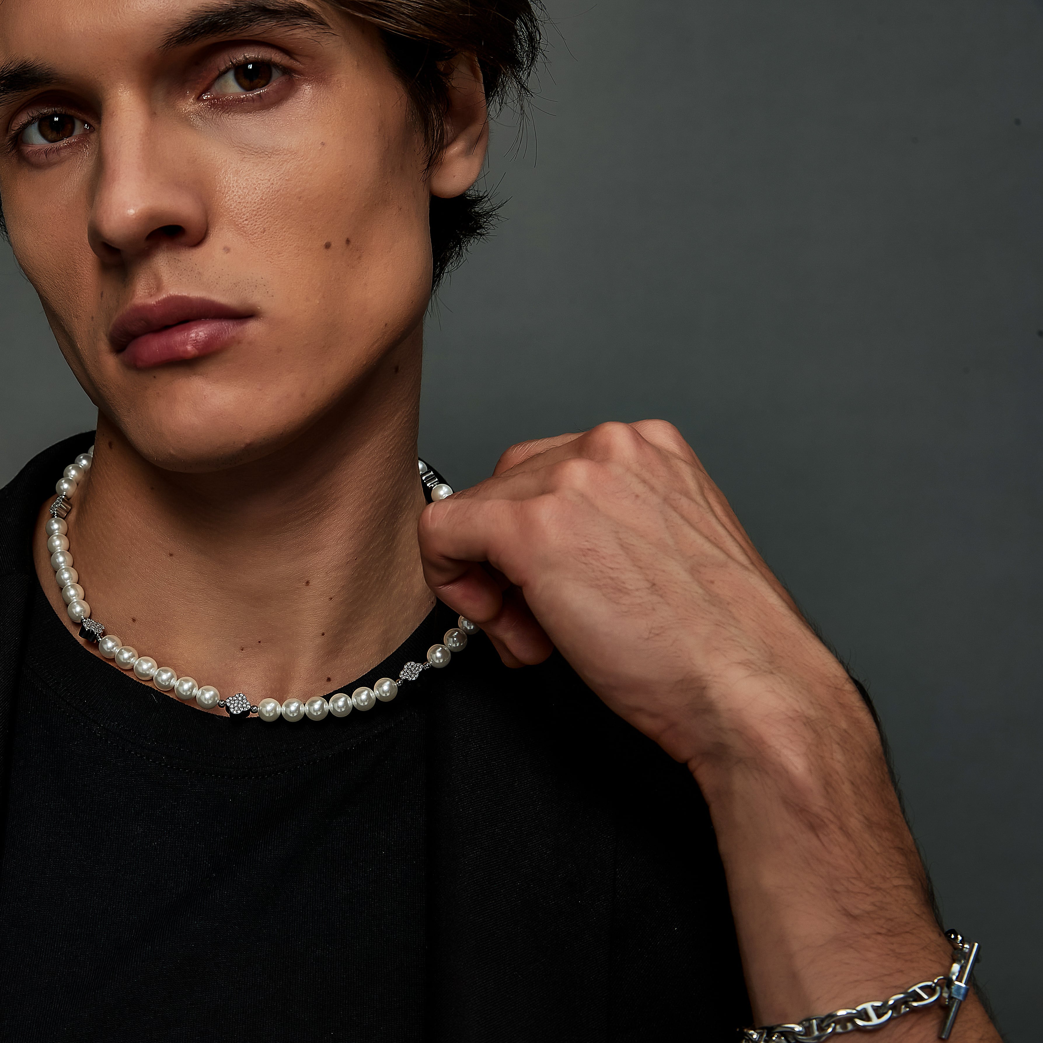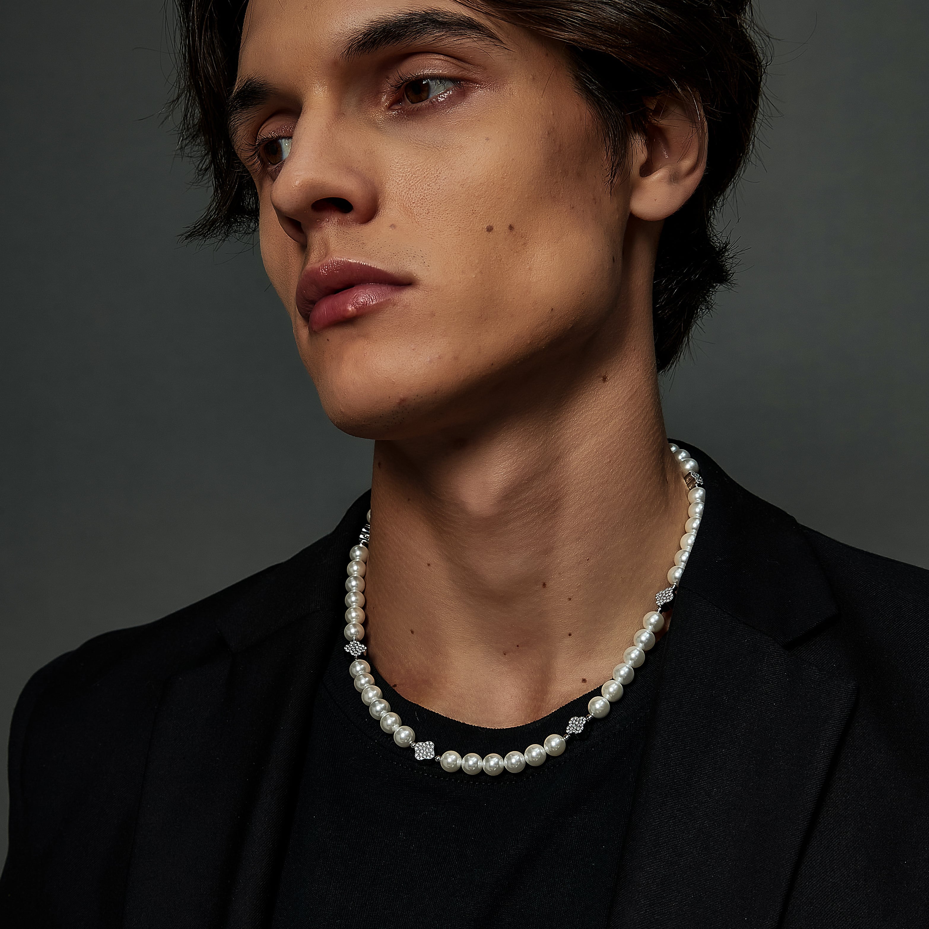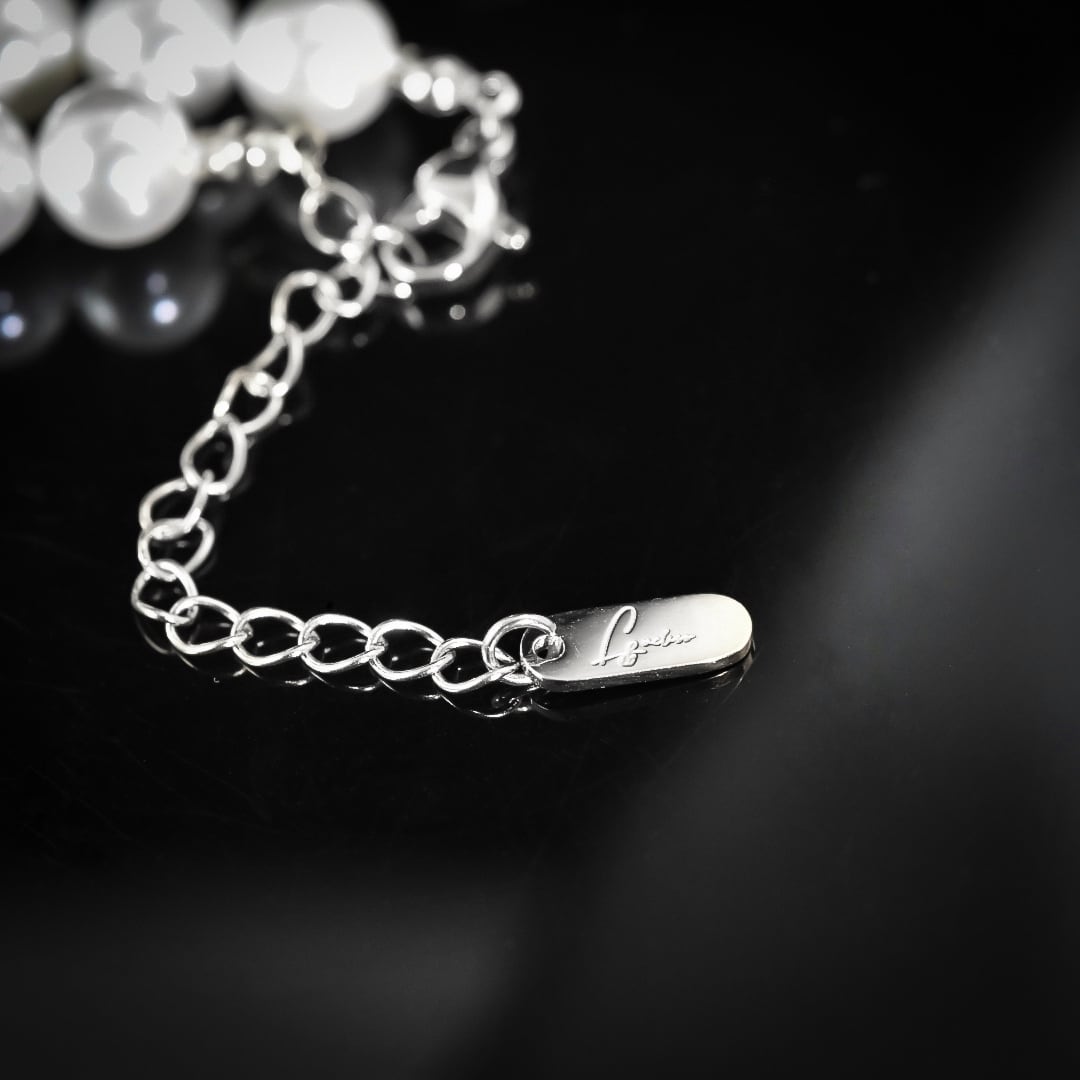 時計などにも使用される高品質シェルパールを使用。淡水パールなどとは異なり、変色に強く本物の真珠と見分けがつかない程、鮮やかな照りを生み出す。