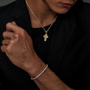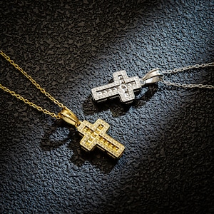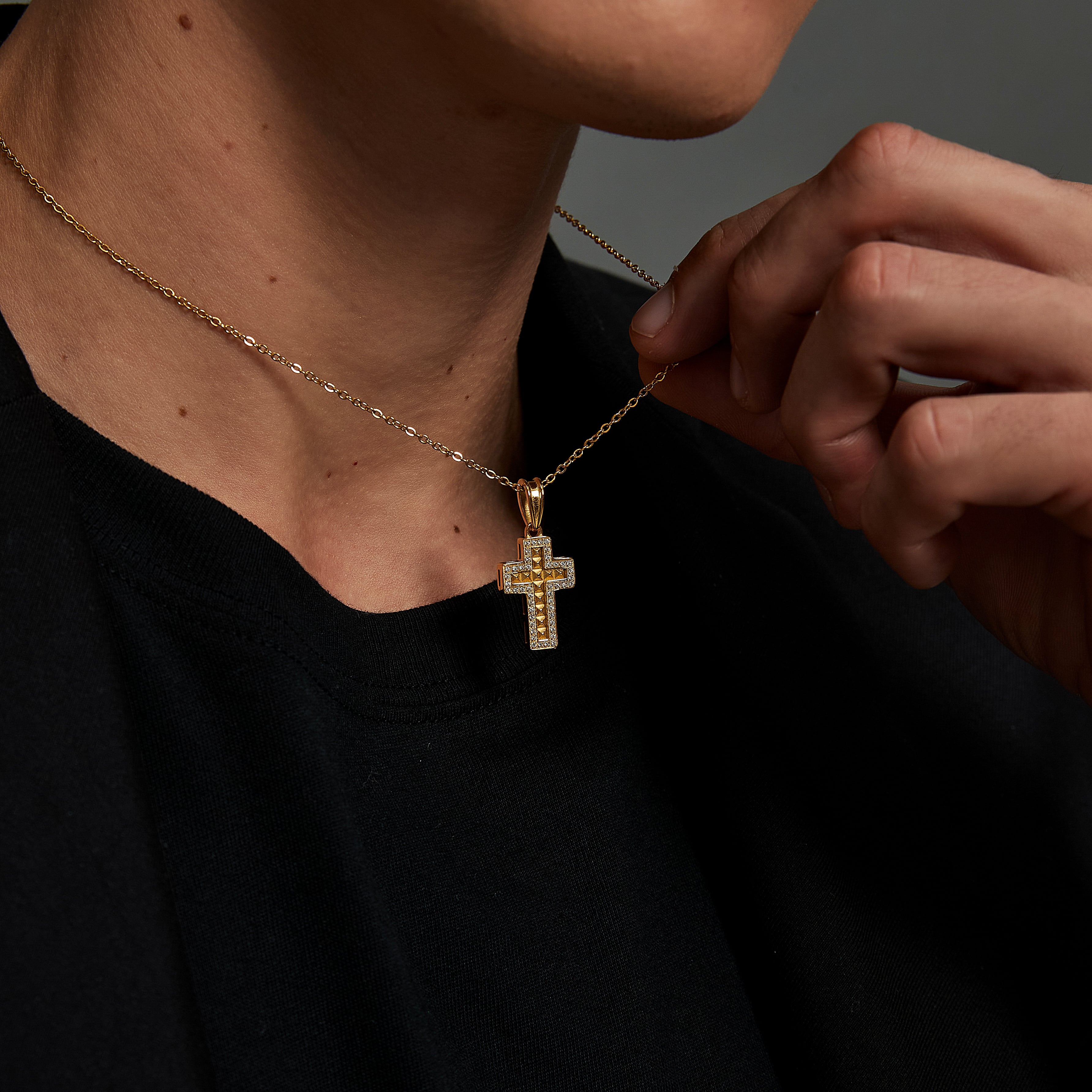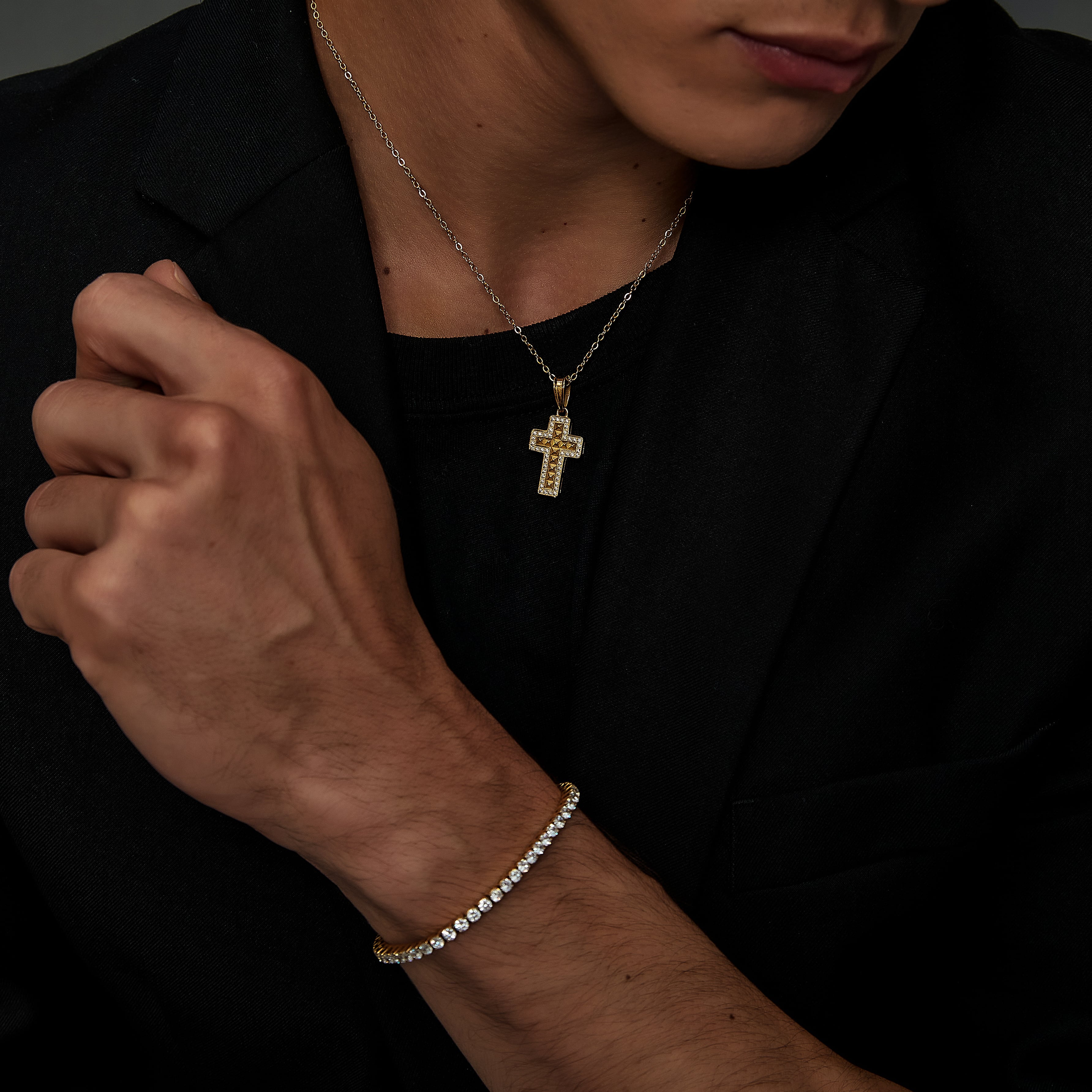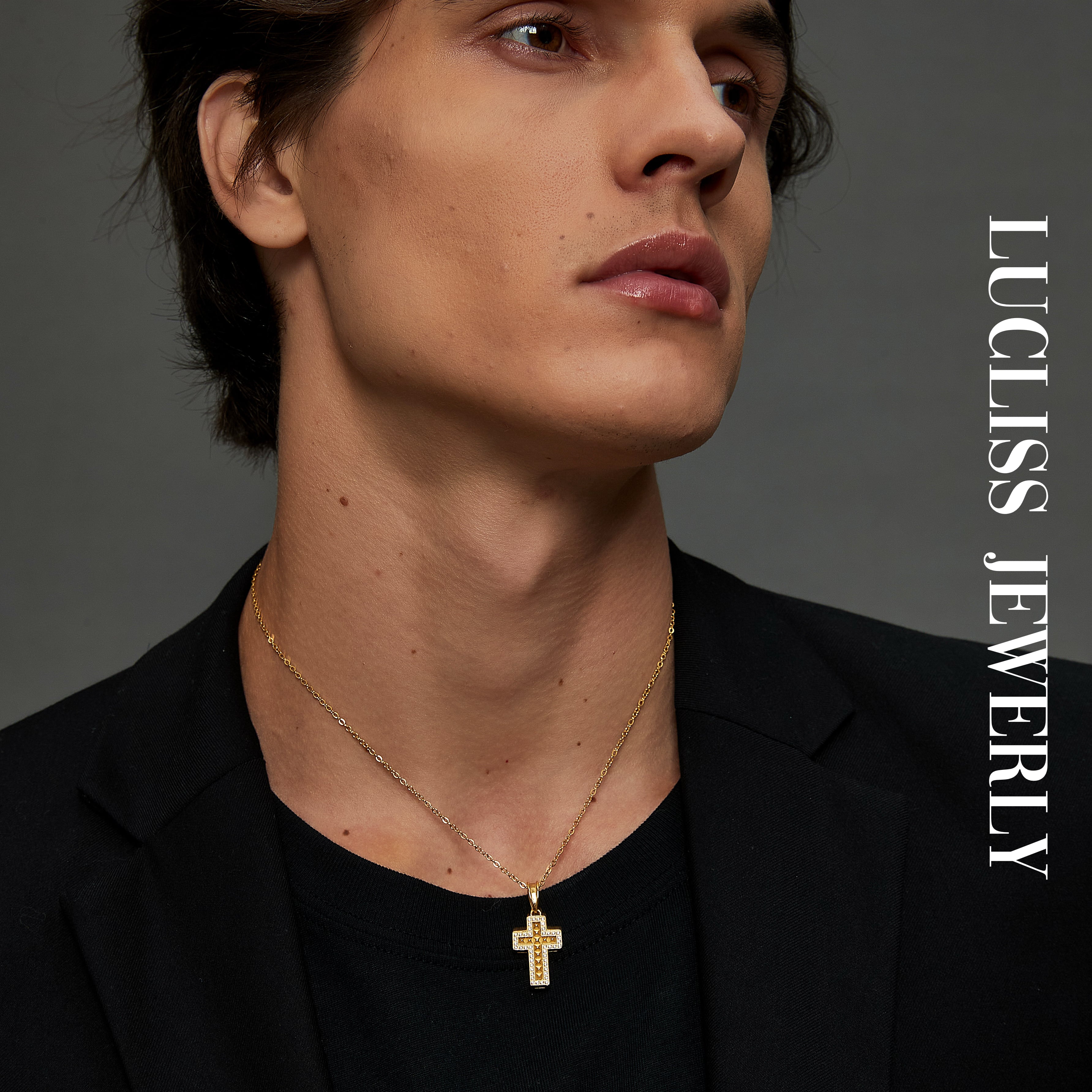・真ん中のスタッズ形状をジルコニアが覆う小ぶりながらも上品なクロスネックレス。
