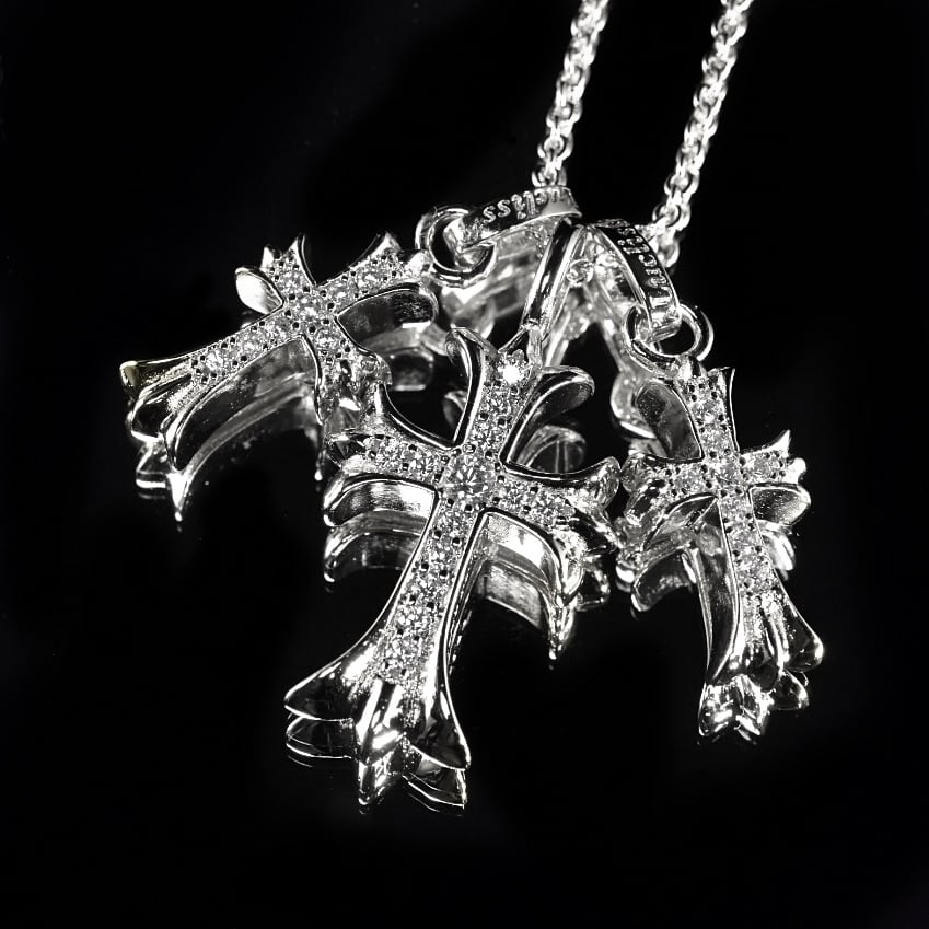 ★24k plating triple cross necklace 5A zirconia(silver)★