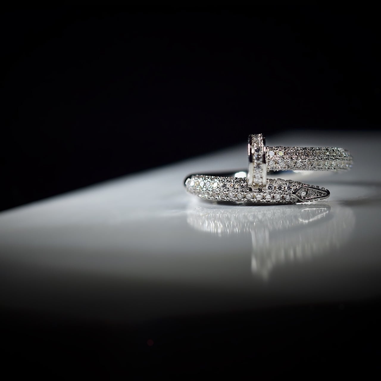 釘をモチーフにし、小粒のzirconia diamondを大量に散りばめた高級感溢れるリング。