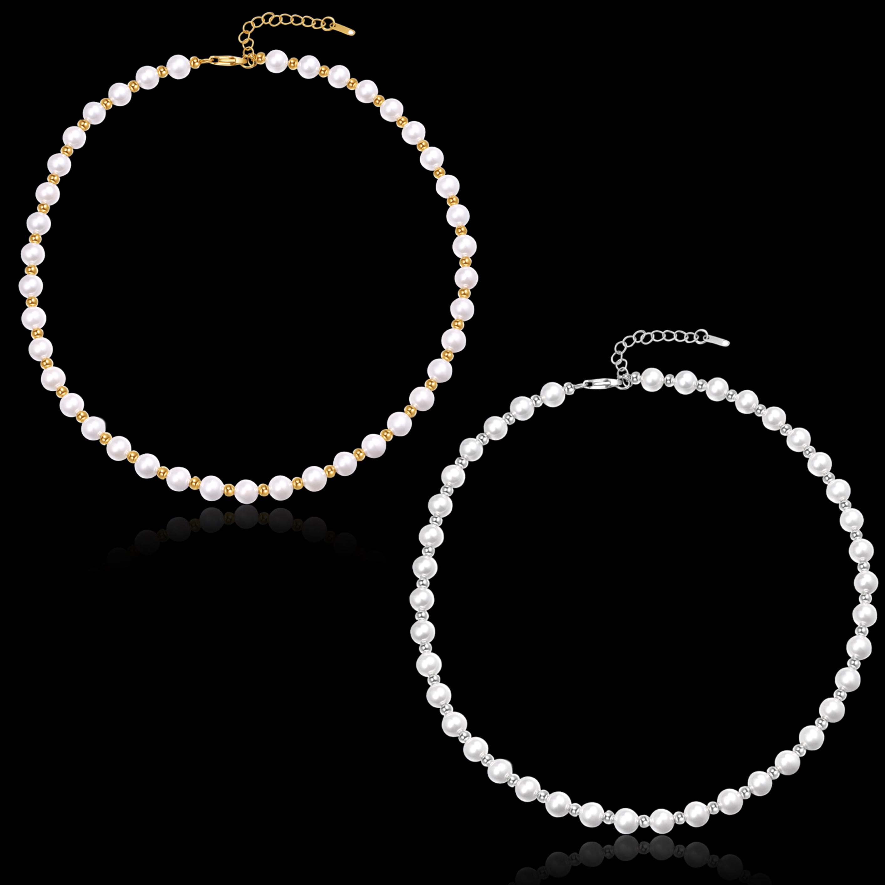 パールを糸で繋がず、ステンレス製ワイヤーで